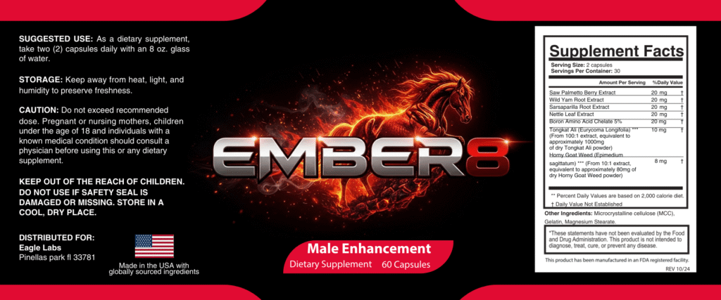 Ember8 is an excellent choice for men who want to improve their sexual performance and regain confidence in intimacy, whether you are in your 30s, 40s, 50s, or even 70s. Its formula has been developed based on the latest scientific advances, combining powerful plant-based ingredients and natural minerals that provide gentle yet highly effective support. Made in the United States, Ember8 is produced in a state-of-the-art facility registered with the FDA and GMP certified, ensuring a product of the highest quality.